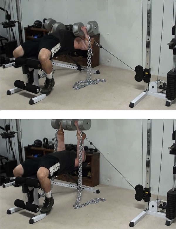 But literally COMBINING two different forms of resistance into one exercise? THIS is not something you see every day. And, strictly speaking, even the concept of combining two different forms of resistance itself isn't new - band training is a TREMENDOUSLY effective way to increase bench press, squats and deadlifts. Powerflifters do this all the time.