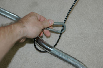 Next, pull the cable out and loop it once around the bar (in the very center)