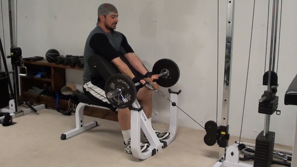 When you add in lateral-pulling resistance from the cable, you're not only curling the barbell weight, you're also pulling directly backwards against that cable resistance and adding tension to that top part.