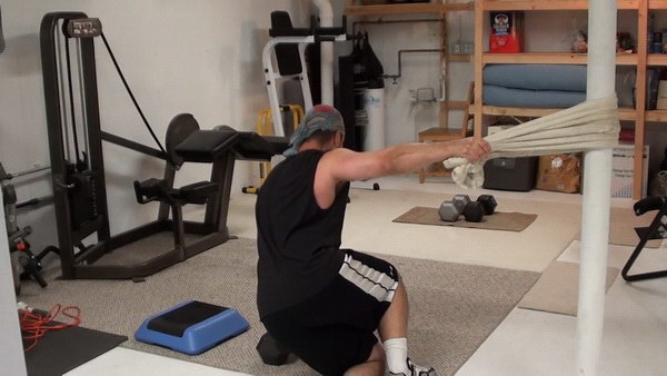That's the exercise! As you can see, this is a good one that you can perform pretty much anywhere...all you need is something solid to loop a towel around and a towel and you've got yourself an excellent lateral-tension exercise.
