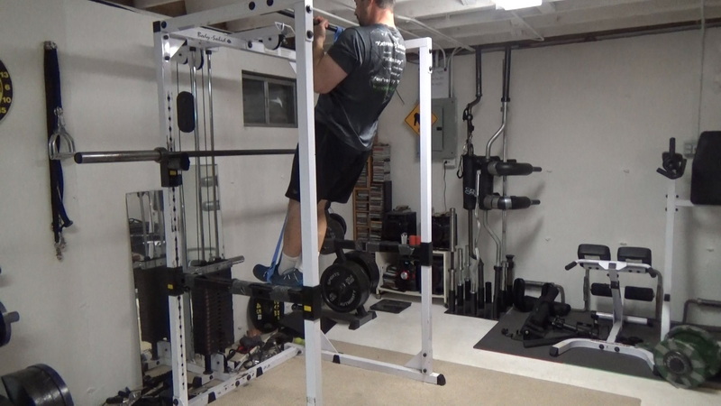 This can come in handy for some exercises, such as band-assisted chin-ups where you don't want the band to slip off your foot. In this picture, you can see I've got my foot almost vertical and the band still stays on.