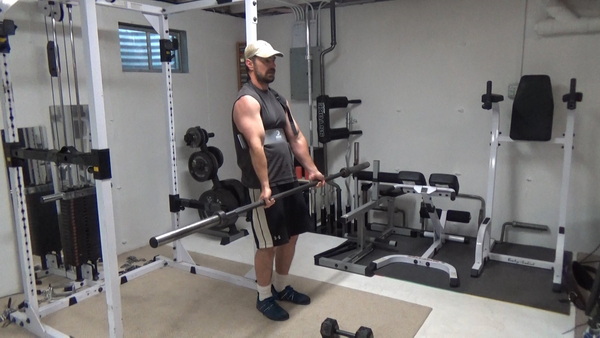 Then grab a barbell with a fairly wide grip and curl.